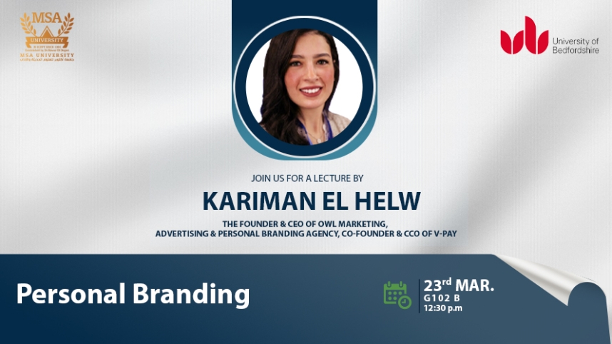 A personal brand is central to professional success. The Faculty of Mass Communication at MSA University would like to invite all the university students to the marvelous, beneficial and creative event entitled “Personal Branding” given by the successful media …