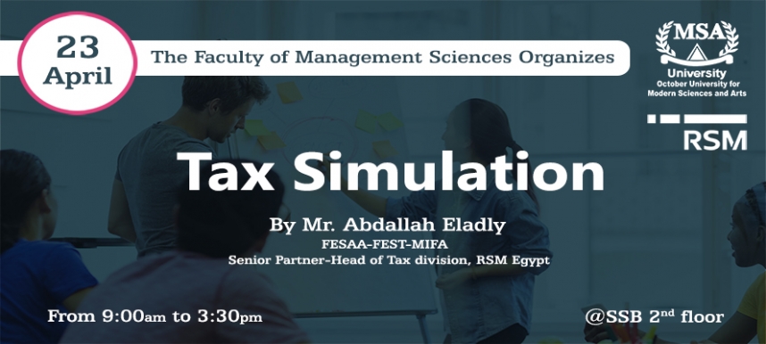 On 23rd April 2019 (9am – 3:30pm) @ SSB 2nd floor The Faculty of Management Sciences will organize a tax simulation by Mr. Abdallah Eladly (FESAA-FEST-MIFA, Senior Partner-Head of Tax division, RSM Egypt). RSM is an international professional accounting, tax and …