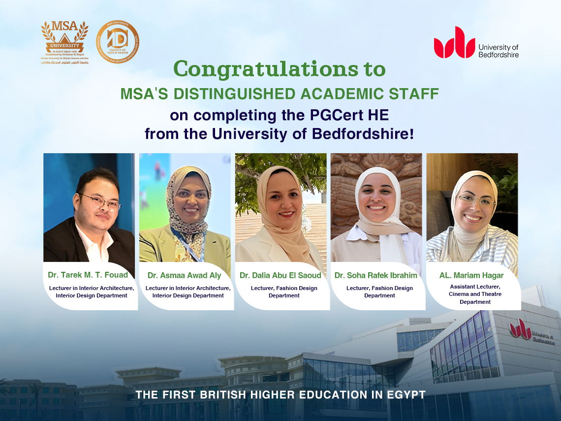 Faculty of Arts and Design at MSA University Celebrates Academic Excellence with PGCert in Higher Education Achievement The Faculty of Arts and Design at October University for Modern Sciences and Arts (MSA) proudly congratulates its distinguished academic staff members for …